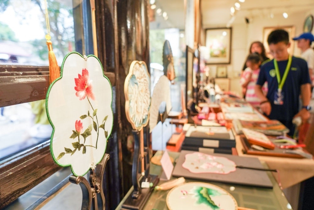 7月6日,游客在平江路一家蘇繡店內(nèi)選購紀念品。