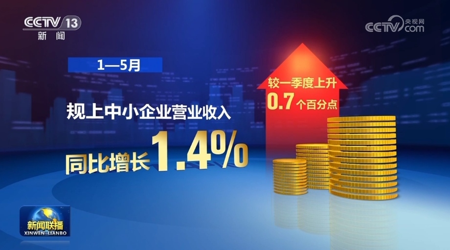 1—5月,規(guī)上中小企業(yè)營業(yè)收入同比增長1.4%,較一季度上升0.7個百分點。1—5月,“小巨人”、專精特新企業(yè)營收利潤率分別為9.9%、7.1%,比規(guī)上工業(yè)企業(yè)分別高4.7個、1.9個百分點。