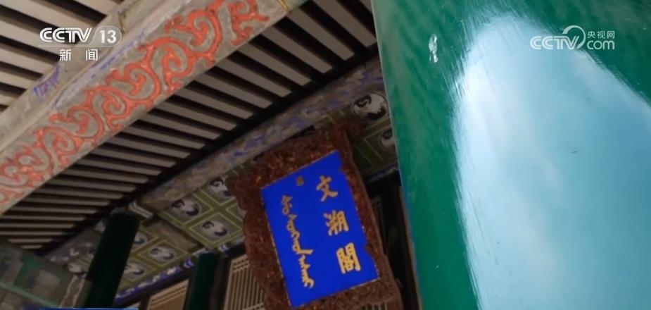 文溯閣為單檐建筑,因在底層前后又增加通廊,便又多出一個腰檐。按照慣例,門額應(yīng)該懸掛到頂層檐下。但是,文溯閣門額卻被懸掛在下層腰檐內(nèi),并且這個牌匾形體碩大,比沈陽故宮其他門額要大出好幾倍,與清代宮廷建筑規(guī)制并不相符。