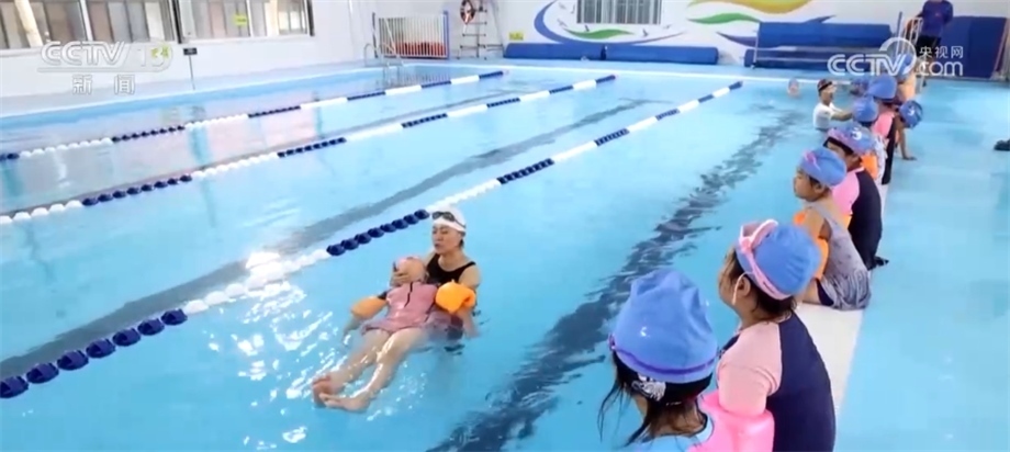 在德州市天衢新區(qū)長(zhǎng)河小學(xué)東七校區(qū)的游泳館內(nèi),二年級(jí)的學(xué)生正在專業(yè)教練的看護(hù)下測(cè)試防溺水的漂浮技能。該校3100余名學(xué)生在本學(xué)期都完成了防溺水初級(jí)階段的培訓(xùn)。