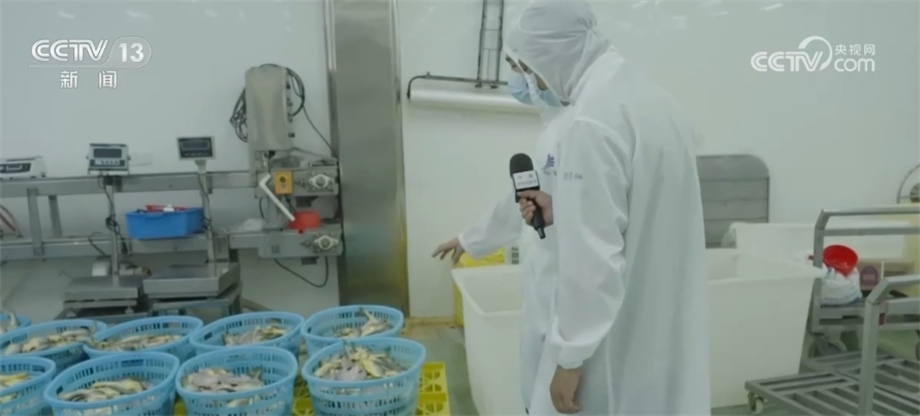 總臺央視記者 馬寧:我現(xiàn)在來到了寧德市當(dāng)?shù)匾患冶容^大的黃魚生產(chǎn)企業(yè),大家可以看到我身后就是工人們正在把已經(jīng)腌制好的黃魚經(jīng)過分撿、稱重、打包、送進(jìn)冷庫,這些經(jīng)過處理的大黃魚就可以通過冷鏈物流送到千家萬戶的餐桌上。