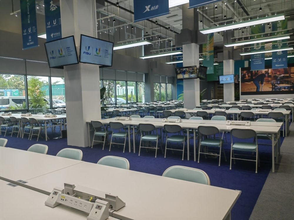 成都大運會主媒體中心內的媒體工作區(qū)。新華社記者董小紅攝
