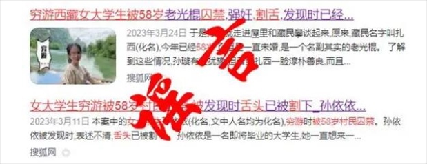 ·西藏網(wǎng)警發(fā)布網(wǎng)絡謠言案例:杜撰“女大學生窮游遭囚禁性侵”3人被查。