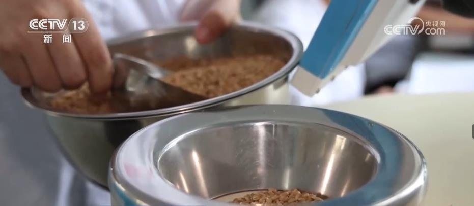 在山東夏津縣一家面粉加工企業(yè),工作人員正對2023年新收的小麥進行容重和蛋白質(zhì)含量檢測。結(jié)果顯示,與往年相比,這兩個指標均有提升。