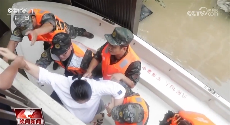 最終,官兵們用沖鋒舟撞開大門擠進小區(qū),隨后爬上孕婦所在居民樓的二樓護欄進入樓內,在14樓發(fā)現受困孕婦。為了保證孕婦的安全轉移,樓上的官兵小心攙扶孕婦翻過欄桿,官兵們搭成人梯,用自己的肩膀托住孕婦的雙腳,穩(wěn)穩(wěn)地把她轉移到沖鋒舟上。