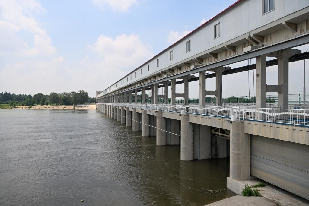 8月2日,上游來(lái)水經(jīng)天津獨(dú)流減河進(jìn)洪閘后流入獨(dú)流減河。新華社記者孫凡越 攝