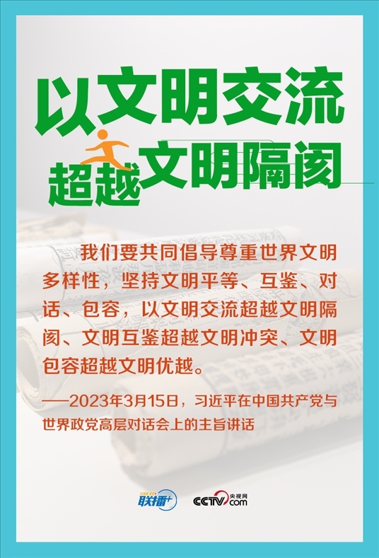文明因交流而多彩,文明因互鑒而豐富。今年3月,在中國共產(chǎn)黨與世界政黨高層對話會上,習近平主席首次提出全球文明倡議,主張“共同倡導尊重世界文明多樣性”,為推動文明交流互鑒、促進人類文明進步提供中國方案。