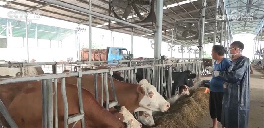 為保障這些牛的日常飼養(yǎng),養(yǎng)殖場每天準備了4000多斤的草料。同時,村里還安排獸醫(yī)每天巡欄觀察。