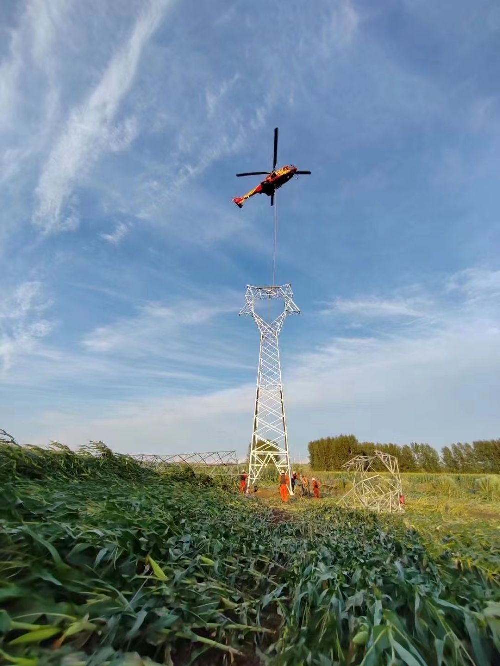 9日,在海林市110千伏長海輸電線路搶修現(xiàn)場,一架直升機(jī)吊裝起沉重的輸電鐵塔,運(yùn)送到指定地點。這個輸電鐵塔處于河流中心島位置,無法使用常規(guī)起重設(shè)備。國家電網(wǎng)公司迅速從國網(wǎng)遼寧電力、國網(wǎng)空間技術(shù)公司等單位調(diào)配直升機(jī)支援黑龍江,解決輸電鐵塔吊裝、運(yùn)輸?shù)葐栴}。