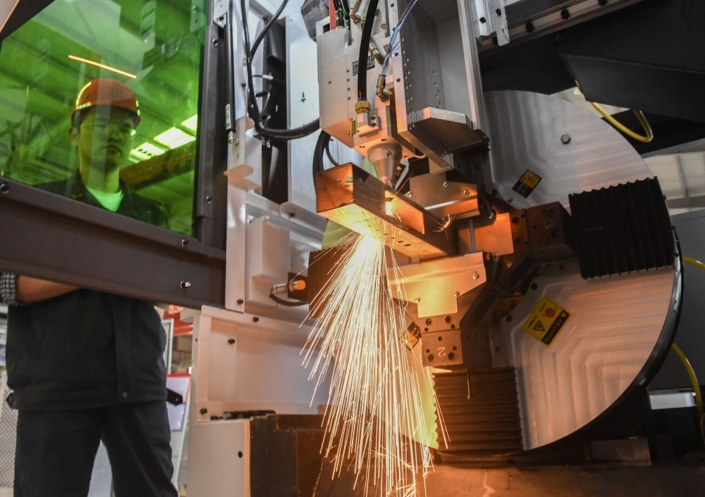 湖北武漢東湖高新區(qū),“中國光谷”。走進(jìn)華工科技產(chǎn)業(yè)股份有限公司,激光切割機(jī)行云流水般在鋼材上雕琢,噴濺出耀眼火花。公司董事長馬新強(qiáng)介紹,從首套國產(chǎn)化數(shù)控激光切割機(jī),到首臺(tái)高性能光纖激光器,華工科技已創(chuàng)下60多項(xiàng)國內(nèi)行業(yè)第一。