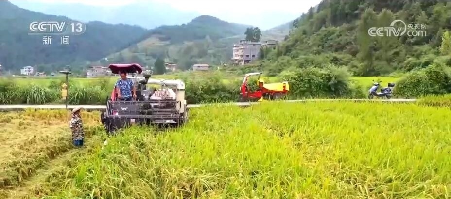 央視網消息:近段時間,重慶酉陽土家族苗族自治縣的26萬畝水稻陸續(xù)進入成熟期,種植戶們駕駛著收割機穿梭在田間,搶收水稻,確保顆粒歸倉。