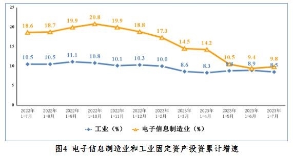 1—7月份,電子信息制造業(yè)固定資產(chǎn)投資同比增長9.8%,比同期工業(yè)投資增速高1.3個(gè)百分點(diǎn),但比高技術(shù)制造業(yè)投資增速低1.7個(gè)百分點(diǎn)。