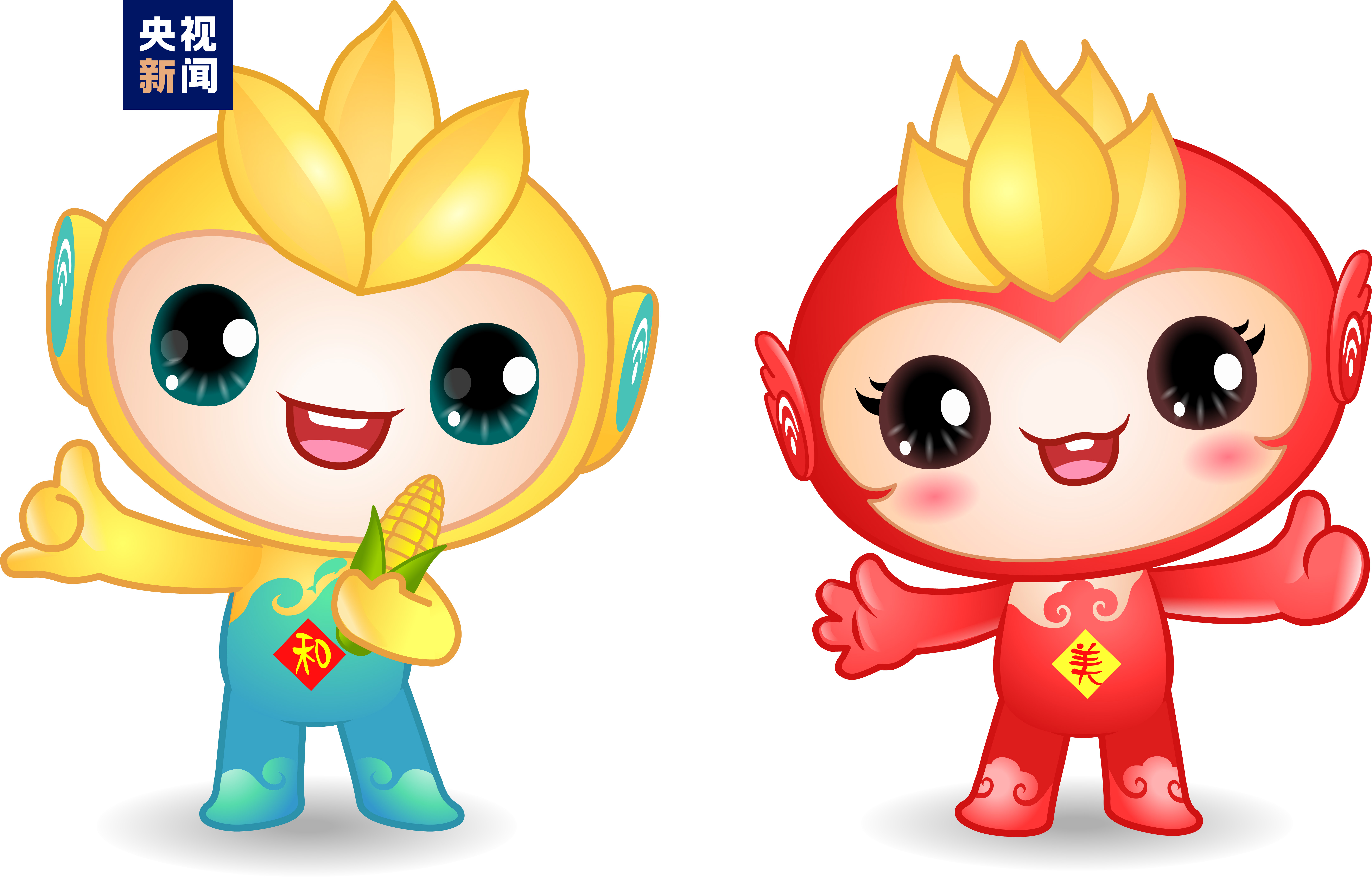 此外,今年中國農(nóng)民豐收節(jié)的吉祥物是“和和”“美美”兩個卡通IP形象,表達了億萬農(nóng)民甜甜美美的豐收喜悅、和和睦睦的幸福生活。IP卡通形象的整體設計,以三大主糧“稻谷、麥穗、玉米”為造型元素,突出豐收節(jié)屬性,融入傳統(tǒng)文化符號與現(xiàn)代信息符號,傳遞豐收、喜悅、吉慶和農(nóng)業(yè)現(xiàn)代化等寓意。其中,“和和”是一個男孩形象,頭上三粒稻谷,既代表種子,又代表三生萬物,繁榮不息。藍色波浪代表長江,江豚魚躍而上,寓意長江之畔,魚米之鄉(xiāng),風調(diào)雨順。“美美”是一個女孩形象,頭上五顆麥粒,寓意代表五谷豐登,表達了對農(nóng)民的最美好祝愿,融入了翅膀元素,昭示著中國農(nóng)業(yè)展翅騰飛,開創(chuàng)新未來。吉祥物的眼睛和耳朵上分別含有信息、數(shù)字科技元素,寓意以科技眼、智慧耳賦能現(xiàn)代農(nóng)業(yè)騰飛,反映了科技賦能、智慧富農(nóng)的新時代現(xiàn)代農(nóng)業(yè)特征。色彩以黃色和紅色為主,分別代表耕地和喜慶,也是豐收黃和中國紅,是農(nóng)民和豐收的最直觀體現(xiàn)。起名“和和、美美”,表達了億萬農(nóng)民喜氣洋洋的豐收喜悅、幸福和美的美好生活。