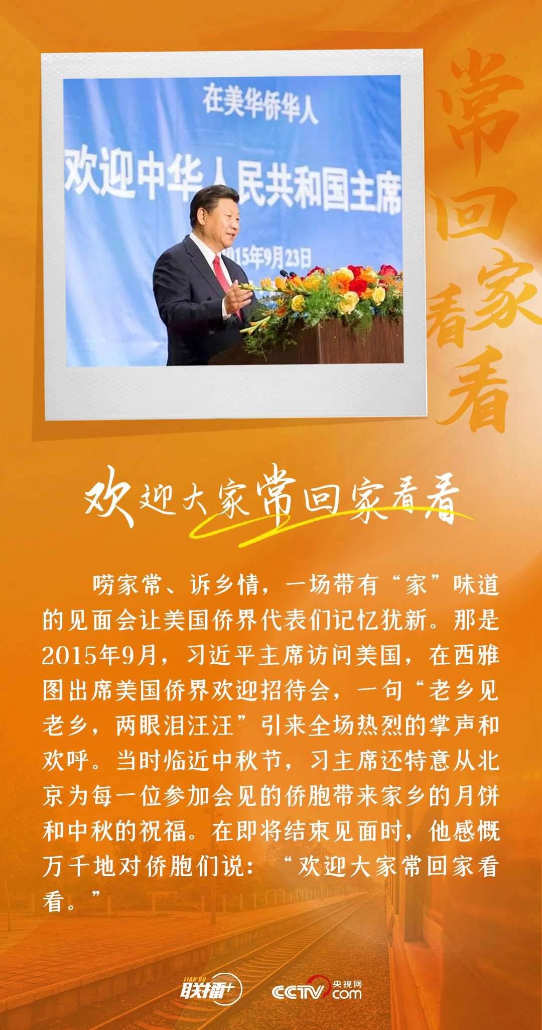 擔(dān)任福州市委書記期間創(chuàng)造性地提出了“以僑引僑、以僑引臺”等招商引資思路,訪問美國期間為僑胞送去月餅,在津巴布韋發(fā)表署名文章講述“非愛不可”媽媽團(tuán)體的故事,在廣東汕頭同市民群眾交流肯定華僑貢獻(xiàn)......從地方到中央,習(xí)近平與“僑”的緣分頗為深長,他對僑情有深入了解,對僑界有深厚感情,與廣大僑胞留下了許多暖心故事。