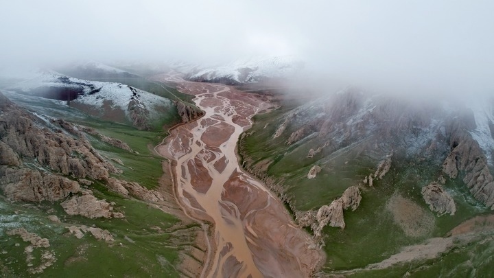 這是7月26日拍攝的通天河支流的辮狀河道(無(wú)人機(jī)照片)。新華社記者 劉詩(shī)平 攝