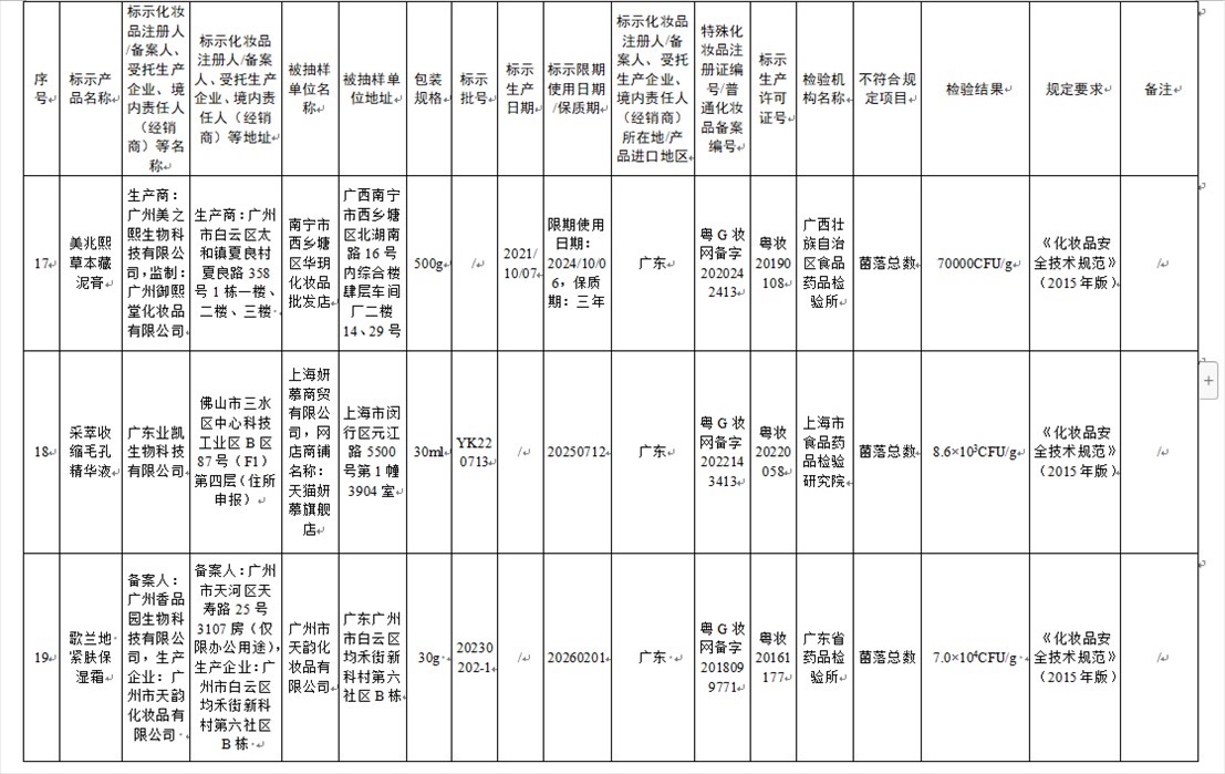 國家藥監(jiān)局網(wǎng)站今天發(fā)布通告稱,在2023年國家化妝品抽樣檢驗(yàn)工作中,經(jīng)重慶市食品藥品檢驗(yàn)檢測研究院等單位檢驗(yàn),產(chǎn)品標(biāo)簽標(biāo)示為廣州市天科化妝品有限公司生產(chǎn)的天科染發(fā)膏(自然黑)等23批次化妝品不符合規(guī)定(見下圖表格)。