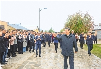 9月6日至8日,中共中央總書(shū)記、國(guó)家主席、中央軍委主席習(xí)近平在黑龍江考察。這是6日下午,習(xí)近平在大興安嶺地區(qū)漠河市北極村考察時(shí),向當(dāng)?shù)厝罕姄]手致意。新華社記者 鞠 鵬攝