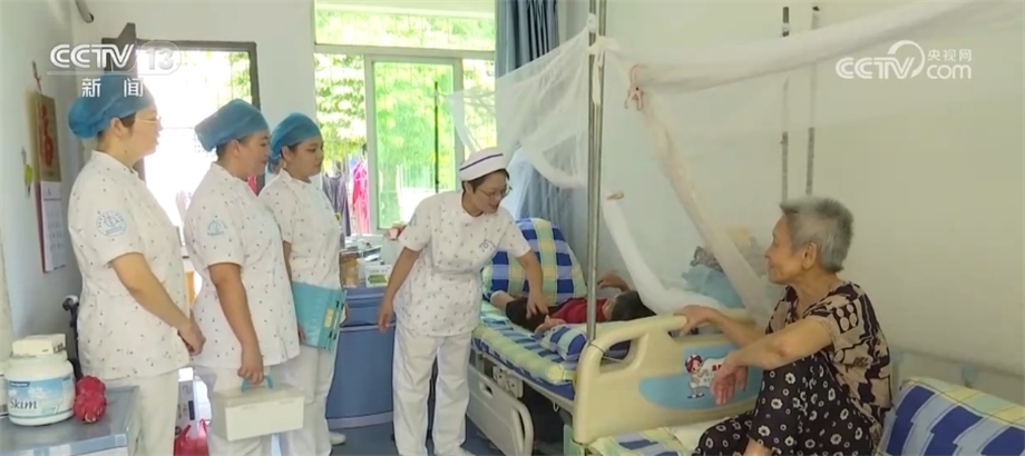 由于住在這里的康復(fù)病人平均年齡都比較大,除了進(jìn)行正常的護(hù)理外,邢少云每到一間病房都會(huì)拉著他們的手聊上一會(huì)兒,老人們看到邢少云的到來也都顯得格外開心。