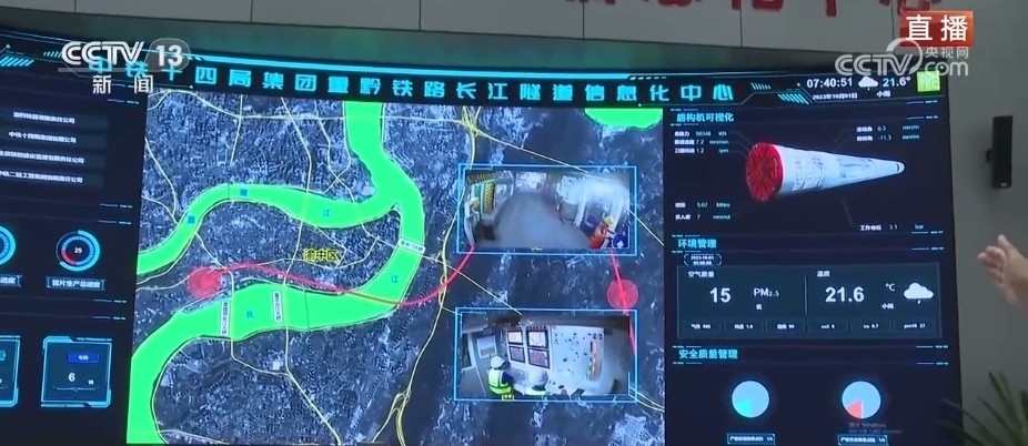 總臺記者 李洪淼:以前修建隧道需要爆破施工,工人在地下需要完成人工打眼、裝炸藥、爆破、出渣等工作,還需要進行后續(xù)的二襯等工序才可以完成隧道建設。而如今,使用盾構(gòu)機來修建隧道,不僅可以讓隧道建設的效率大大提升,還能改善工人們的工作環(huán)境,安全性也有保障。智慧化的施工監(jiān)測平臺可以對洞內(nèi)的施工一目了然。