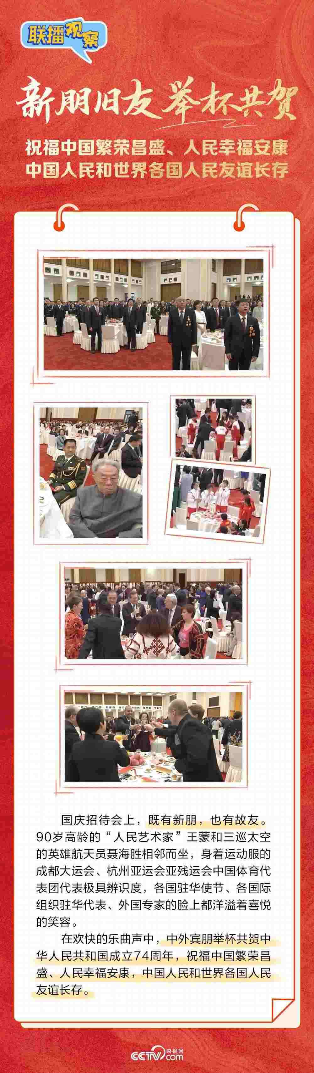 在歡快的樂曲聲中,中外賓朋舉杯共賀中華人民共和國成立74周年。作為一場“簡約而不簡單”的高規(guī)格國宴,習(xí)近平總書記在講話中強(qiáng)調(diào)了哪些重點內(nèi)容?國慶招待會的餐桌有哪些亮點細(xì)節(jié)?都有哪些新朋舊友出現(xiàn)在招待會上?央視網(wǎng)《聯(lián)播觀察》與您一同“云參會”。