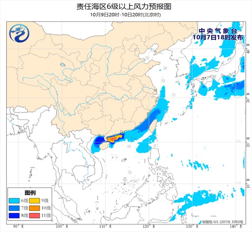 7日夜間至8日白天,廣東中部和東部沿海、粵閩交界沿海及渤海北部的部分海域?qū)⒂?~10級(jí)的雷暴大風(fēng)。