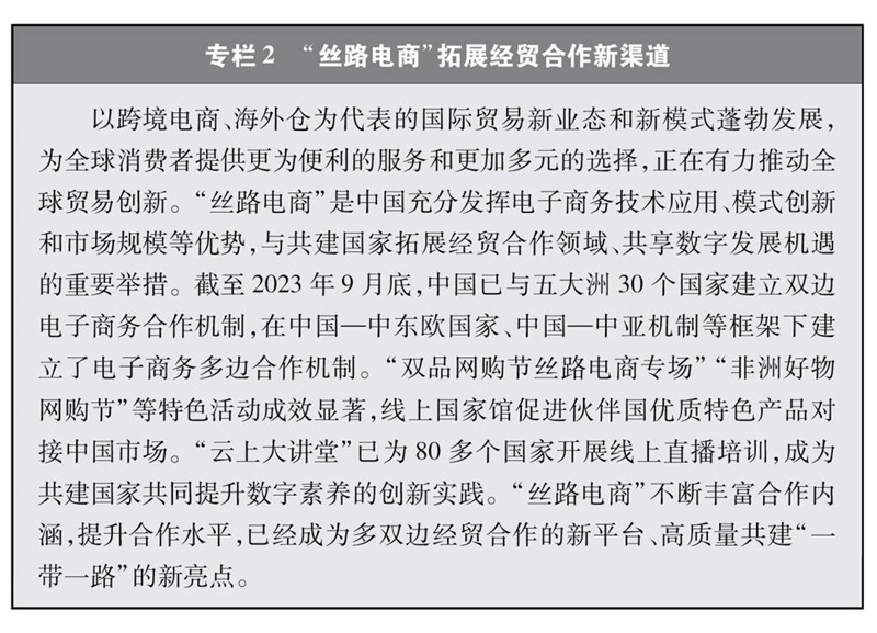 “數(shù)字絲綢之路”建設(shè)亮點紛呈。共建國家加強數(shù)字領(lǐng)域的規(guī)則標(biāo)準(zhǔn)聯(lián)通,推動區(qū)域性數(shù)字政策協(xié)調(diào),攜手打造開放、公平、公正、非歧視的數(shù)字發(fā)展環(huán)境。截至2022年底,中國已與17個國家簽署“數(shù)字絲綢之路”合作諒解備忘錄,與30個國家簽署電子商務(wù)合作諒解備忘錄,與18個國家和地區(qū)簽署《關(guān)于加強數(shù)字經(jīng)濟領(lǐng)域投資合作的諒解備忘錄》,提出并推動達(dá)成《全球數(shù)據(jù)安全倡議》《“一帶一路”數(shù)字經(jīng)濟國際合作倡議》《中國-東盟關(guān)于建立數(shù)字經(jīng)濟合作伙伴關(guān)系的倡議》《中阿數(shù)據(jù)安全合作倡議》《“中國+中亞五國”數(shù)據(jù)安全合作倡議》《金磚國家數(shù)字經(jīng)濟伙伴關(guān)系框架》等合作倡議,牽頭制定《跨境電商標(biāo)準(zhǔn)框架》。積極推進(jìn)數(shù)字基礎(chǔ)設(shè)施互聯(lián)互通,加快建設(shè)數(shù)字交通走廊,多條國際海底光纜建設(shè)取得積極進(jìn)展,構(gòu)建起130套跨境陸纜系統(tǒng),廣泛建設(shè)5G基站、數(shù)據(jù)中心、云計算中心、智慧城市等,對傳統(tǒng)基礎(chǔ)設(shè)施如港口、鐵路、道路、能源、水利等進(jìn)行數(shù)字化升級改造,“中國-東盟信息港”、“數(shù)字化中歐班列”、中阿網(wǎng)上絲綢之路等重點項目全面推進(jìn),“數(shù)字絲路地球大數(shù)據(jù)平臺”實現(xiàn)多語言數(shù)據(jù)共享。空間信息走廊建設(shè)成效顯著,中國已建成連接南亞、非洲、歐洲和美洲的衛(wèi)星電信港,中巴(西)地球資源系列遙感衛(wèi)星數(shù)據(jù)廣泛應(yīng)用于多個國家和領(lǐng)域,北斗三號全球衛(wèi)星導(dǎo)航系統(tǒng)為中歐班列、船舶海運等領(lǐng)域提供全面服務(wù);中國與多個共建國家和地區(qū)共同研制和發(fā)射通信或遙感衛(wèi)星、建設(shè)衛(wèi)星地面接收站等空間基礎(chǔ)設(shè)施,依托聯(lián)合國空間科技教育亞太區(qū)域中心(中國)為共建國家培養(yǎng)大量航天人才,積極共建中海聯(lián)合月球和深空探測中心、中阿空間碎片聯(lián)合觀測中心、瀾湄對地觀測數(shù)據(jù)合作中心、中國東盟衛(wèi)星應(yīng)用信息中心、中非衛(wèi)星遙感應(yīng)用合作中心,利用高分衛(wèi)星16米數(shù)據(jù)共享服務(wù)平臺、“一帶一路”典型氣象災(zāi)害分析及預(yù)警平臺、自然資源衛(wèi)星遙感云服務(wù)平臺等服務(wù)于更多共建國家。