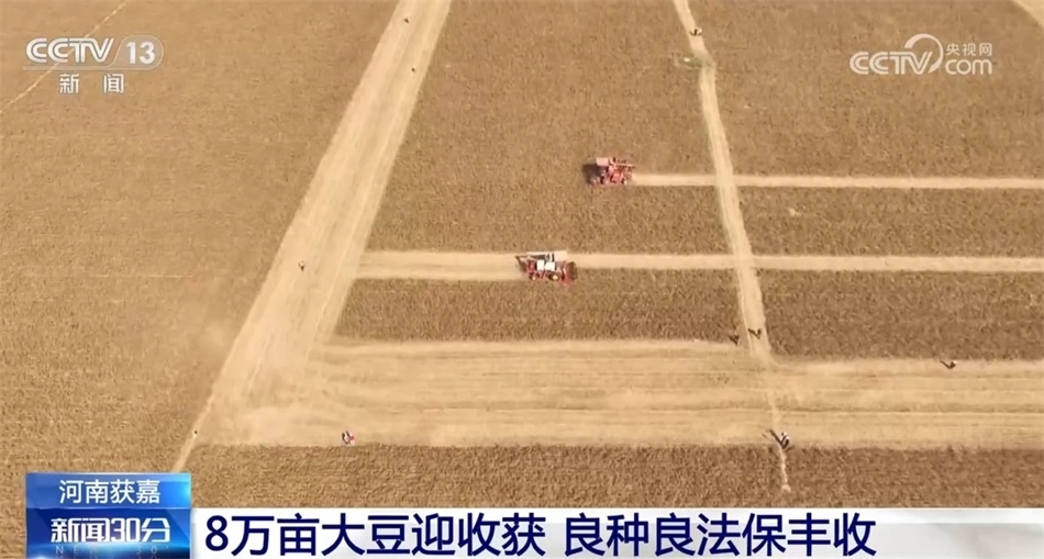 金秋十月,河南新鄉(xiāng)市獲嘉縣8.25萬畝大豆迎來了收獲期,大豆田里收割機往來穿梭、有序作業(yè)。近年來,當?shù)剞r業(yè)專家探索出的一套“良種+良法”相配套、“農機+農藝”相結合的高產優(yōu)質栽培管理技術,為大豆高產夯實了技術保障。