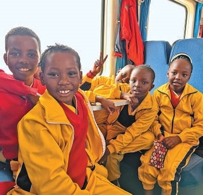 蒙內(nèi)鐵路是中國與肯尼亞共建“一帶一路”標志性工程。圖為肯尼亞學(xué)生高興地乘坐列車出行。本報記者 張志文攝