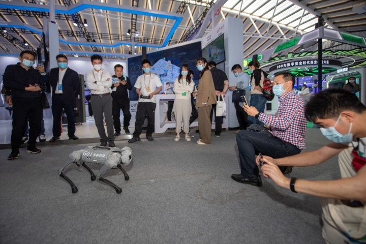 2022年11月10日,觀眾在“互聯(lián)網(wǎng)之光”博覽會上參觀機器狗表演。新華社