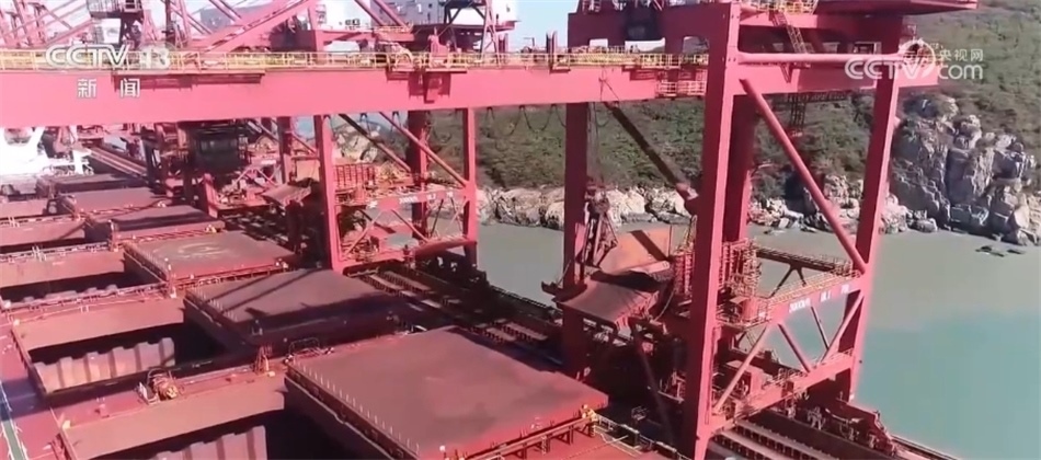 記者來到寧波舟山港鼠浪湖礦石中轉(zhuǎn)碼頭時(shí),一個(gè)個(gè)抓斗正忙著從巨輪上接卸礦石。今年以來,40萬噸礦船是這里的常客。作為大宗物資集散地,寧波舟山港承擔(dān)了長江經(jīng)濟(jì)帶45%的鐵礦石、90%以上的油品中轉(zhuǎn)量。前三季度,寧波舟山港經(jīng)營體系內(nèi)鐵礦石的接卸量超過了1億噸。