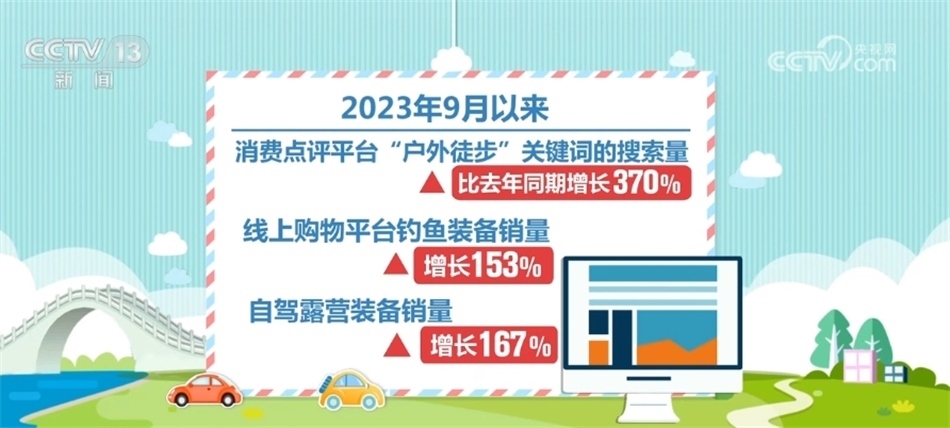 據(jù)統(tǒng)計,今年九月以來,消費點評平臺“戶外徒步”關鍵詞的搜索量比去年同期增長了370%,線上購物平臺釣魚裝備銷量增長153%,自駕露營裝備銷量增長了167%。隨著“戶外+”的新模式、新業(yè)態(tài)大量涌現(xiàn),消費產(chǎn)品也日趨多樣化,戶外運動對體育產(chǎn)業(yè)的帶動作用更加凸顯。