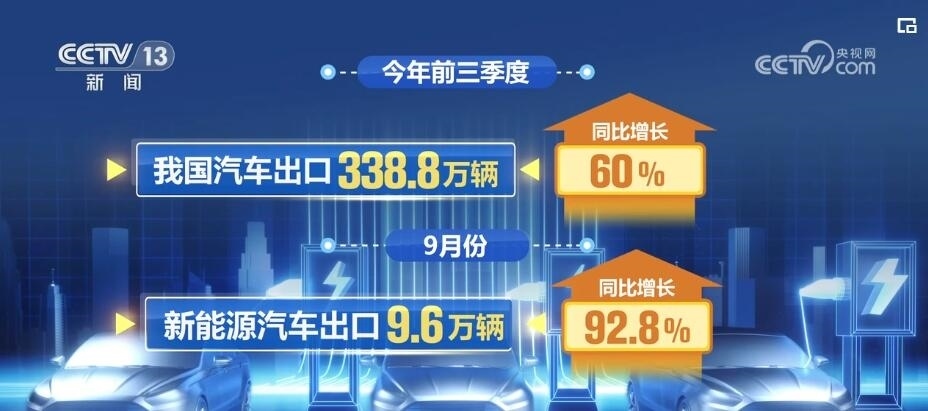 今年前三季度,我國汽車出口338.8萬輛,同比增長60%。這其中,新能源汽車的出口增幅十分強(qiáng)勁。其中9月份,新能源汽車出口9.6萬輛,同比增長92.8%。在不少國家,中國的新能源汽車已經(jīng)成為當(dāng)?shù)匦履茉雌囦N量的總冠軍。分析背后的原因,“固本興新”是關(guān)鍵詞,新能源汽車正為中國外貿(mào)注入新的動(dòng)能。據(jù)中國汽車工業(yè)協(xié)會(huì)的預(yù)計(jì),2023年汽車出口將超過400萬輛,其中新能源汽車將超過100萬輛。