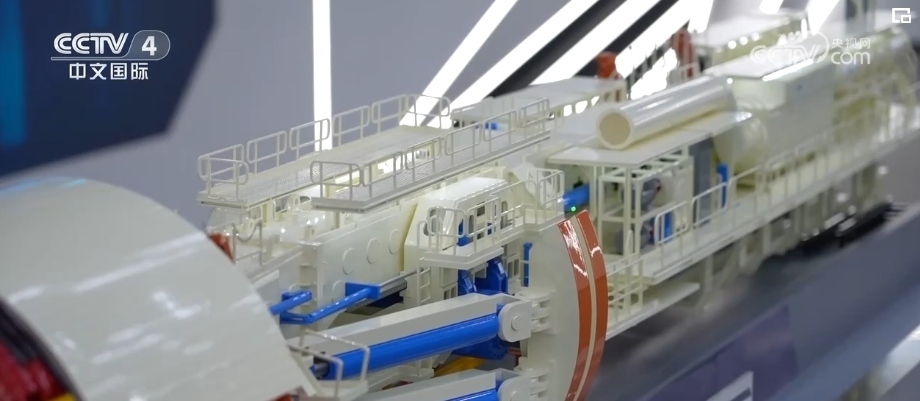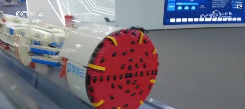 總臺記者 趙鶴:除了應(yīng)用在相對小型的產(chǎn)線上,在盾構(gòu)機(jī)、掘進(jìn)機(jī)這樣的國之重器上,也早已經(jīng)憑借物聯(lián)網(wǎng)技術(shù)進(jìn)行了智能化的升級。從這臺等比例縮小的硬巖隧道掘進(jìn)機(jī)的模型可以看到,在它的最前方是刀盤,用來進(jìn)行碾磨巖石作業(yè),在這樣一個(gè)和巖石產(chǎn)生激烈碰撞的地方也有傳感器的存在,來感知這些刀具的磨損轉(zhuǎn)速等數(shù)據(jù)信息。
