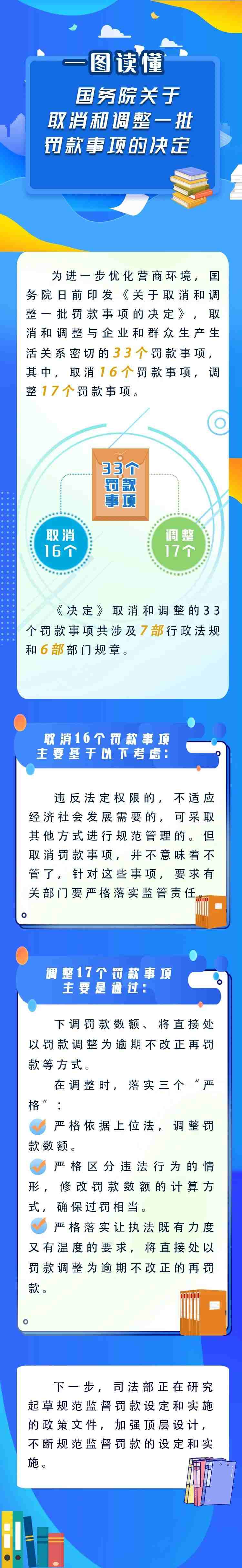 司法部有關(guān)負(fù)責(zé)人表示,取消罰款事項(xiàng)并不意味著不管了,對(duì)于這些事項(xiàng),有關(guān)部門要嚴(yán)格落實(shí)監(jiān)管責(zé)任。
