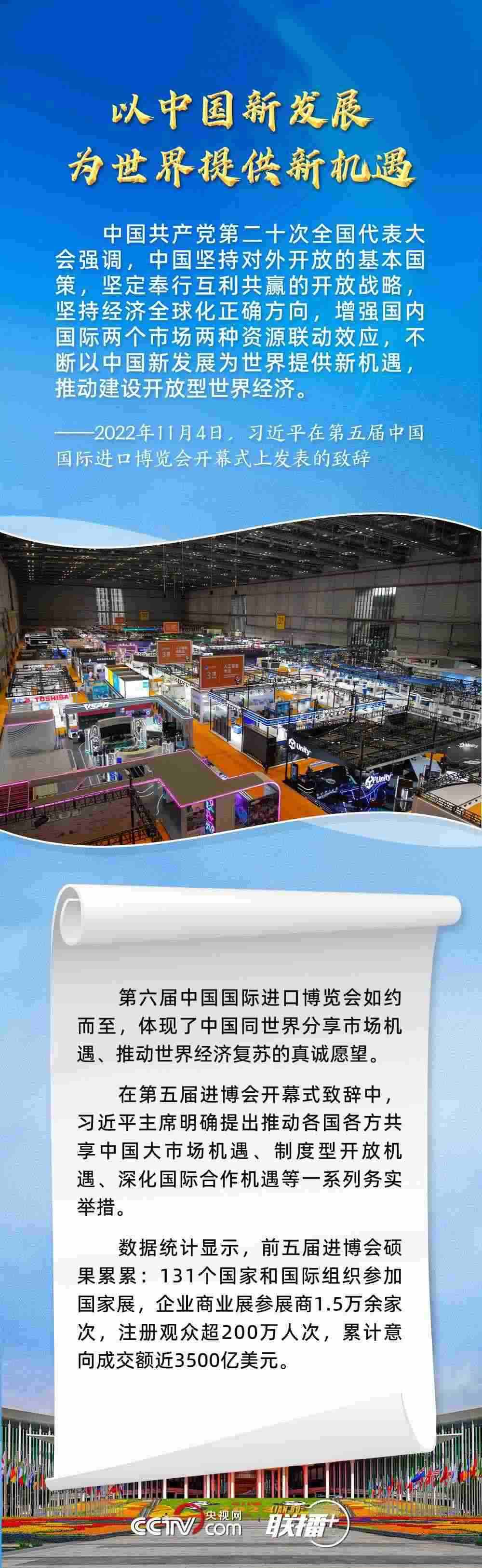 11月5日,第六屆中國國際進(jìn)口博覽會(huì)在上海開幕。習(xí)近平主席在致信中指出,2018年以來,進(jìn)博會(huì)成功舉辦五屆,依托中國大市場優(yōu)勢,發(fā)揮國際采購、投資促進(jìn)、人文交流、開放合作平臺(tái)功能,對加快構(gòu)建新發(fā)展格局和推動(dòng)世界經(jīng)濟(jì)發(fā)展作出了積極貢獻(xiàn)。