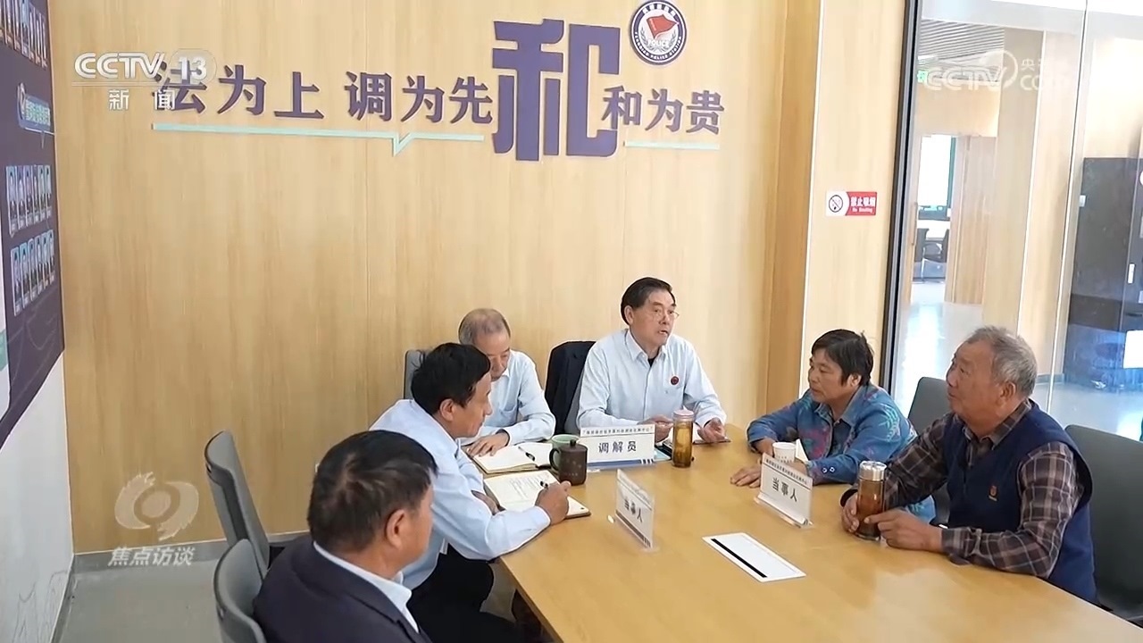 浙江省諸暨市楓橋鎮(zhèn)杜黃新村黨委書記、人民調(diào)解委員會主任王海軍:“村里一般的調(diào)解村兩委會以及村調(diào)委基本上就地解決,因為‘楓橋經(jīng)驗’矛盾不出村,所以我們一般在村里面解決。但是涉及到法律法規(guī)一塊或者有些老百姓在‘心結(jié)’上面解不開,我們就動用共享法庭?!?/p>