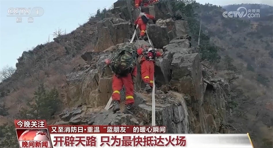 今年四月份,一處起火點(diǎn)在海拔3800多米的峭壁懸崖,為盡快滅火,最快的路線就是要翻越這段坡度超過(guò)70度的山脊。山脊寬不足米,左右兩側(cè)都是百米深的斷崖。負(fù)責(zé)開路的消防員只能用手指扣住石縫,雙腳登著石頭,把臉和軀干緊貼山體向上攀爬。在危險(xiǎn)重重的絕壁上硬生生地開辟出了一條救援天路。二百多名消防員夜以繼日,在高海拔缺氧的環(huán)境下,每天背著將近40斤重的滅火機(jī)具往返于這條天路之上,奔赴火場(chǎng)。整整十個(gè)晝夜的撲救,山火終于被撲滅。