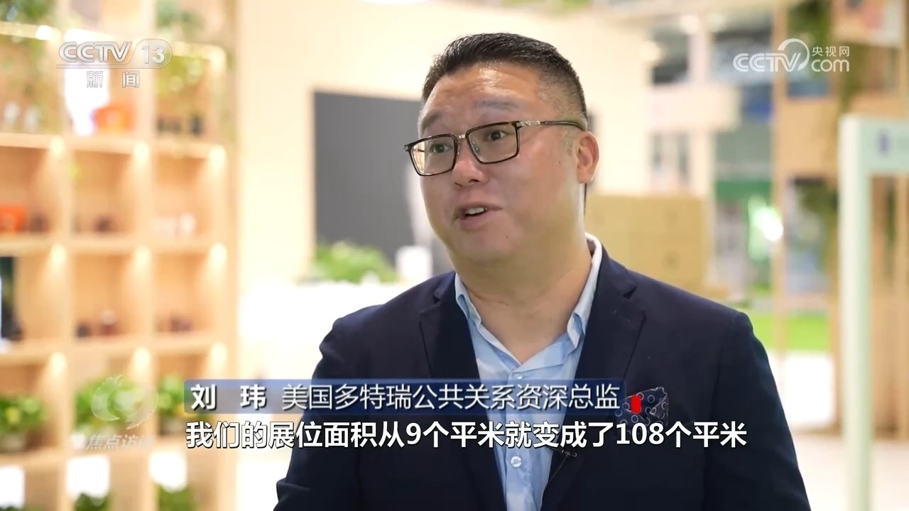 美國多特瑞公共關(guān)系資深總監(jiān)劉瑋:“因?yàn)橛辛说谝粚眠M(jìn)博會,給了公司非常大的信心,所以從第二屆開始,我們的展位面積從9平米變成了108平米,第三屆的時候我們又拓展到了150平米,直到現(xiàn)在我們的整個面積達(dá)到了200平米,所以面積的增長帶來了非常好的收益。”