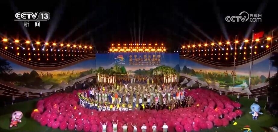 隨著學青會火炬的緩緩熄滅,第一屆全國學生(青年)運動會圓滿閉幕。運動員、演員、志愿者們共同匯入閉幕演出的歡樂海洋中。