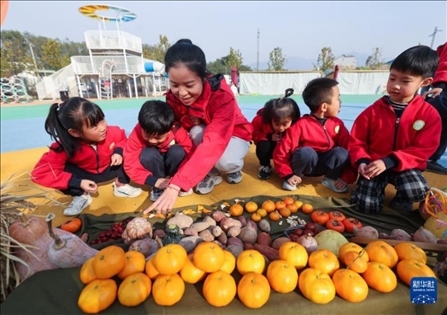 浙江省湖州市長興縣李家巷鎮(zhèn)中心幼兒園開展“冬日校園 樂享豐收”校園豐收節(jié)主題活動。孩子們在老師的帶領下參觀豐收節(jié)農作物展、手工藝品展,還參加挑擔子、運蘿卜、接力送玉米等趣味運動,學習知識、鍛煉身體,感受豐收帶來的喜悅。