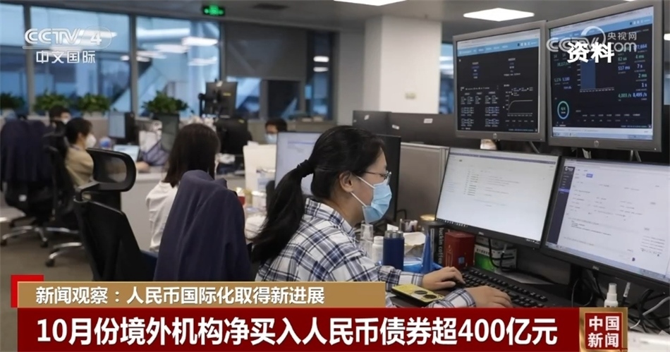 10月,境外機構(gòu)凈買入人民幣債券超400億元,創(chuàng)下過去四個月以來新高。截至10月末,共有1110家境外機構(gòu)主體進入中國債券市場,顯示人民幣投融資和避險功能逐步增強。