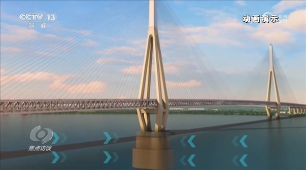 鄭清剛:“鐵路一側(cè)的荷載比公路一側(cè)要重8.6噸,就是每延米有8.6噸,就像兩個(gè)人抬東西,比如一頭重量大了的話,就會(huì)發(fā)生一頭高一頭低的情況。我們是通過(guò)一些結(jié)構(gòu)上的辦法,采用不同強(qiáng)度的斜拉索來(lái)匹配這個(gè)受力。”