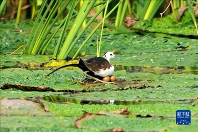 杭州灣濕地公園的水雉。新華網(wǎng)發(fā) 浙江杭州灣國家濕地公園供圖