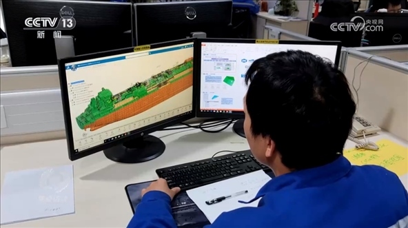精益求精是確保產(chǎn)品質(zhì)量的生命線,科技創(chuàng)新則是推動(dòng)產(chǎn)業(yè)進(jìn)步的動(dòng)力源。2016年,江南造船成立了江南研究院,利用數(shù)字技術(shù)來提高設(shè)計(jì)和生產(chǎn)中的效率。比如這套VR系統(tǒng)就可以模擬船艙內(nèi)的真實(shí)情況,讓設(shè)計(jì)師、建造團(tuán)隊(duì)和船東公司可以據(jù)此共同討論設(shè)計(jì)是否合理,這極大地降低了成本、提高了效率。