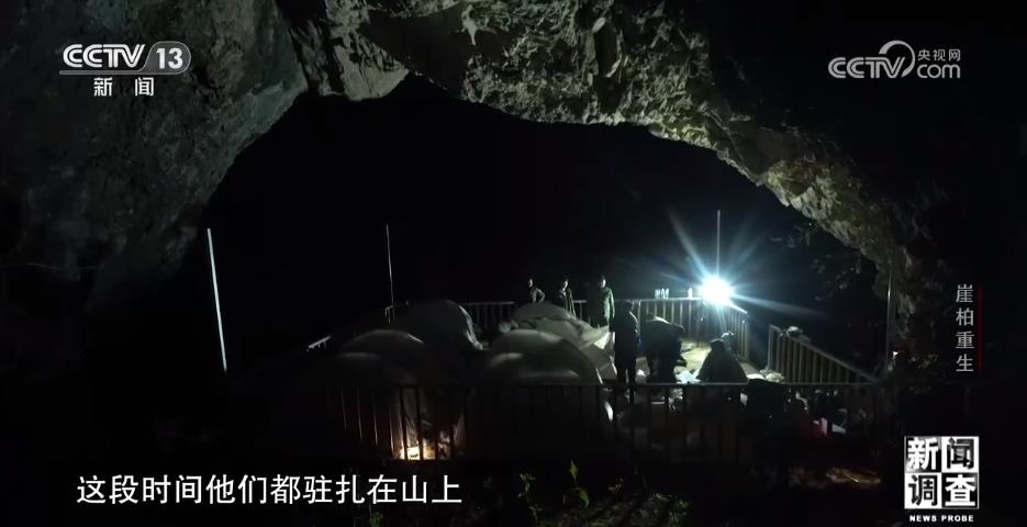 調(diào)查用的工具、保險(xiǎn)繩、干糧、帳篷,僅僅是這些必需品,他們的背包就有好幾十斤重。無人區(qū)里沒有路,沿途基本都是密集的樹林和雜草,隊(duì)員們只能用砍刀開路。有些崖壁是直接懸空的,根本沒有著力點(diǎn)。隊(duì)員們就從山林里找來廢棄的木頭,用鐵絲捆在一起,搭成木橋和圍欄。走了四個(gè)多小時(shí),他們終于在一處懸崖發(fā)現(xiàn)了野生崖柏。他們手中的儀器叫做定位器,可以精確記錄崖柏生長(zhǎng)地點(diǎn)的經(jīng)緯度和海拔,給科研提供更精確的信息。