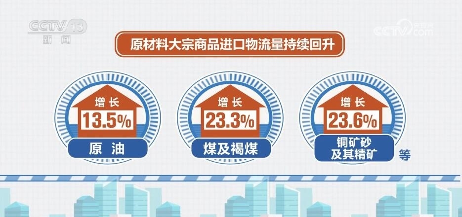 從貨類看,10月份,在消費(fèi)帶動(dòng)下,糧食、大豆、食用油等進(jìn)口量增速超過(guò)20%。原油、煤及褐煤、銅礦砂及其精礦等原材料大宗商品進(jìn)口物流量持續(xù)回升,分別增長(zhǎng)13.5%、23.3%和23.6%。