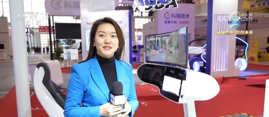 總臺(tái)央視記者 張歆:在本屆鏈博會(huì)上,我們也看到了許多智能專用車。大家可以看到在我身旁就是一臺(tái)智能航空食品專用車,這臺(tái)重量達(dá)到21噸左右的“大塊頭”裝了許多個(gè)雷達(dá),通過(guò)5G的算法就能夠?qū)崿F(xiàn)無(wú)人駕駛和無(wú)人作業(yè)。