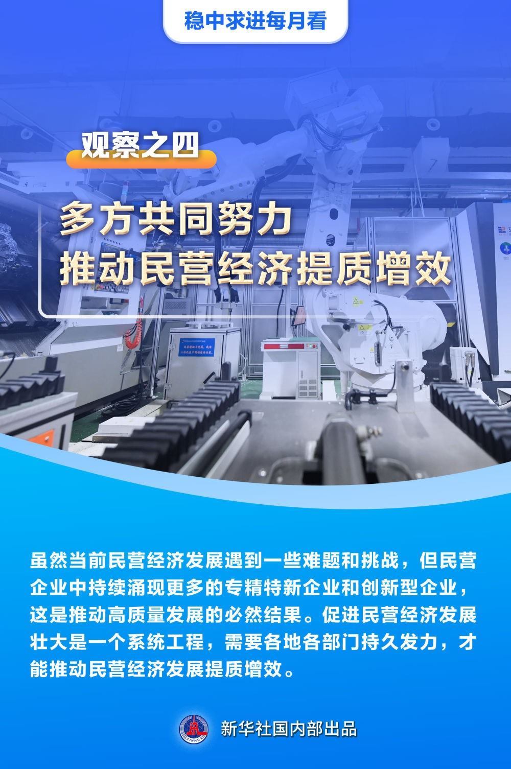 【記者觀察】雖然當(dāng)前民營經(jīng)濟(jì)發(fā)展遇到一些難題和挑戰(zhàn),但民營企業(yè)中持續(xù)涌現(xiàn)更多的專精特新企業(yè)和創(chuàng)新型企業(yè),這是推動(dòng)高質(zhì)量發(fā)展的必然結(jié)果。促進(jìn)民營經(jīng)濟(jì)發(fā)展壯大是一個(gè)系統(tǒng)工程,需要各地各部門持久發(fā)力,才能推動(dòng)民營經(jīng)濟(jì)發(fā)展提質(zhì)增效。
