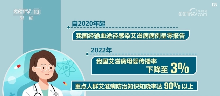 自2020年起,我國(guó)經(jīng)輸血途徑感染艾滋病病例呈零報(bào)告。2022年,我國(guó)艾滋病母嬰傳播率下降至3%,重點(diǎn)人群艾滋病防治知識(shí)知曉率達(dá)90%以上。