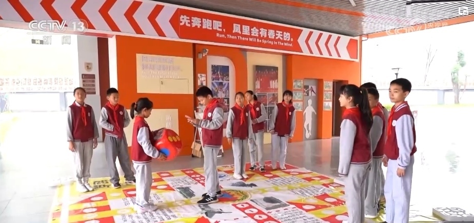 山東濰坊市坊子區(qū)實驗學(xué)校利用戶外空地,開發(fā)了一系列益智類和傳統(tǒng)民間游戲等地面游戲。湖南長沙的清水塘江灣小學(xué),學(xué)校通過在每個教室門口設(shè)置摸高“打卡”點、走道鋪裝“跳房子”九宮格等方法,創(chuàng)造出很多隨處可玩的場所。